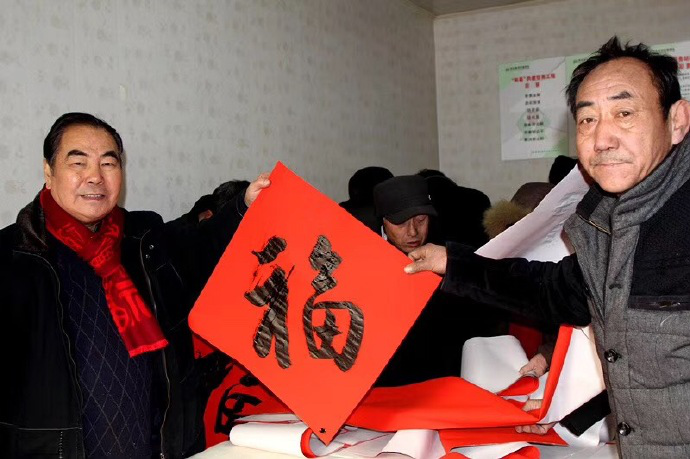 åä¹å¤§æ˜¥é£ŽåŒ–雨,万åƒå®¶å–œæ°”盈门。农历戊戌狗年新春到æ¥ä¹‹é™…ï¼Œæ²³åŒ—çœæ¥¹è”å¦ä¼šéš†é‡ç»„ç»‡ä¹¦æ³•å®¶èµ°åŸºå±‚é€æ˜¥è”活动。多ä½çœå¸‚书法å家腊月å一大清早就集体乘车æ¥åˆ°æ— æžåŽ¿è¥¿éƒåº„æ‘æ–‡åŒ–活动ä¸å¿ƒï¼ŒçŽ°åœºæŒ¥æ¯«æ³¼å¢¨ï¼Œä¸ºå½“åœ°ç™¾å§“ä¹‰åŠ¡ä¹¦å†™æ˜¥è”和“ç¦â€å—,书春é€â€œç¦â€æ´»åŠ¨æ°”æ°›çƒçƒˆï¼Œå¤‡å—群众欢迎。